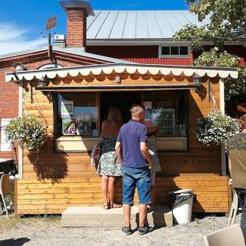 Myyntivaunu ruokarekka myyntikärry, keltamusta väri, alumiinirakenteinen. Varustettu suurilla ikkunoilla, työtasoilla ja säilytystilalla. Soveltuu ulkomyyntiin ja tapahtumakäyttöön. Varusteluun kuuluu jääkaappi ja vesipiste ja grilli