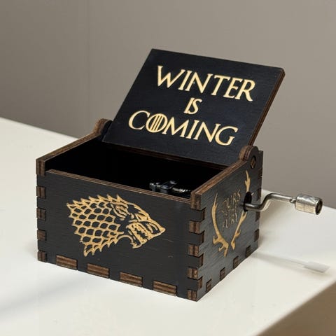6.4*5.2*4.2cm Harry Potter puinen soittorasia, jossa teksti 'I Solemnly Swear that I am Up to No Good'. Soittorasiassa on kaiverrettuja yksityiskohtia ja se on valmistettu puusta. Musta väri, kannessa ja sivuilla Harry Potter -teemaiset koristeet