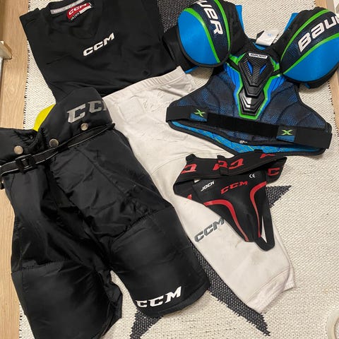 CCM JR Medium jääkiekkohousut, musta väri, koko 137-147 cm (Junior Medium). Soveltuu jääkiekkoiluun. Materiaalina kestävä ja suojaava kangas. Housuissa vyötäröllä säädettävä vyö. Suunniteltu juniorikäyttäjille.
