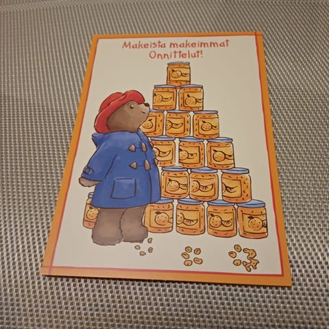 Kuvanmukainen käyttämätön Karhu Herra Paddington postikortti.
