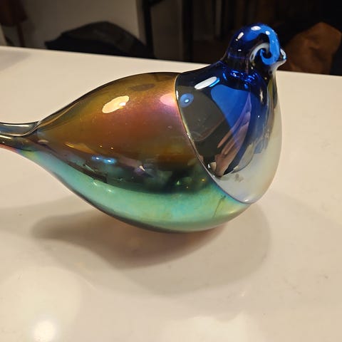 Espoon Taidelasin valmistama Lysteri-koristelintu.