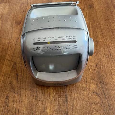 Dantax merkkinen tv. Ehkä n. 18" näyttö.