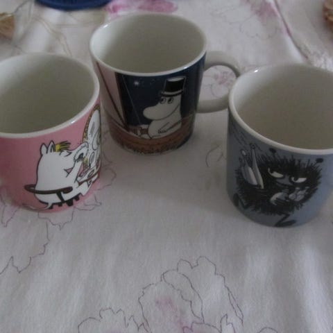 Muumimukeja, satunnaisesti olleet käytössä. Ei tarroja. 10e kpl. Maksu mp
