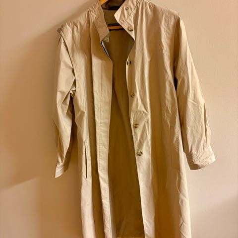 Uudenveroinen vintagea poplarityylinen. Pesumerkkiä ei löytynyt. Materiaaliksi veikkaan pellavaa/luonnonkuitua. Sitä vanhaa hyvää laatua on. Dry clean luki vain ei materiaalia.