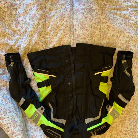 Richa Airwave moottoripyörätakki, koko XS. Takki on musta ja keltainen, valmistettu kestävästä materiaalista. Sopii moottoripyöräilyyn ja tarjoaa suojaa ajon aikana. Takissa on säädettävät vyötärön kiristykset ja hengittävä rakenne.