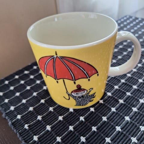 Muumi mammamuki. Mukissa yläreunassa pieni valkoinen viiva sekä musta viiva