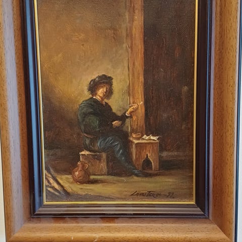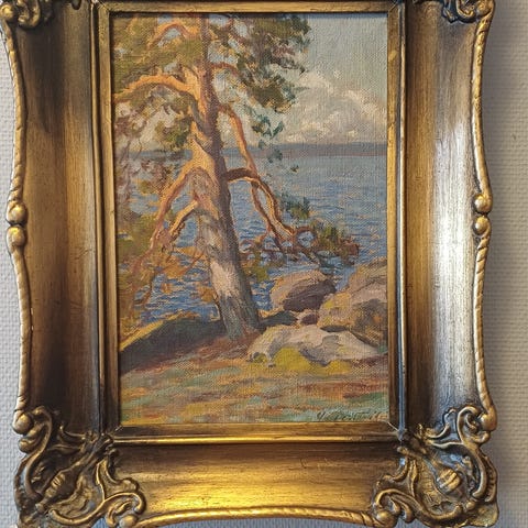 Yrjö kiikan maalaus levylle.Maalauksen koko 20x29 cm