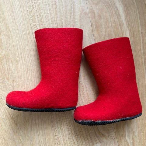 Lahtiset huopikkaat kumipohjalla koossa 28. Melko vähän käytetty ja hyvässä kunnossa.