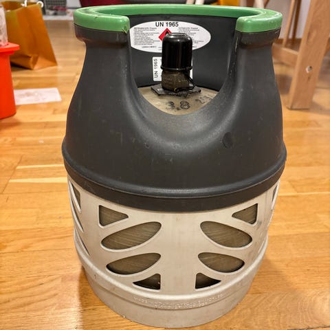 Campingaz 3.8 kg kaasupullo, koko 3.8 kg. Sopii kaasulaitteisiin, jotka käyttävät tätä kaasupullokokoa. Melkein täynnä. Itselle ei ole enää kaasugrilli. Pitäisi olla letkukin tallella.