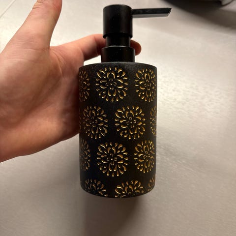 Tämä tyylikäs vaahdottava saippuapumppu täytetään laimennetulla nestesaippualla tai valmiilla vaahtosaippuanesteellä. Säiliön materiaali on keraamista kiveä muistuttavaa polyresiiniä ja pumppuosa terästä ja muovia. Korkeus 16,5 cm ja halkaisija 8 cm.