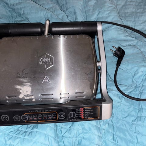 Tämä OBH Nordica OptiGrill+ -sähkögrilli sisältää automaattisen paksuuden mittauksen ja kypsyysasteen ilmaisimen. Laitteessa on kuusi esiohjelmoitua kypsennysohjelmaa, jotka soveltuvat eri ruokalajeille, kuten lihalle, kalalle ja voileiville. Irrotettavat osat ovat konepesun kestäviä.