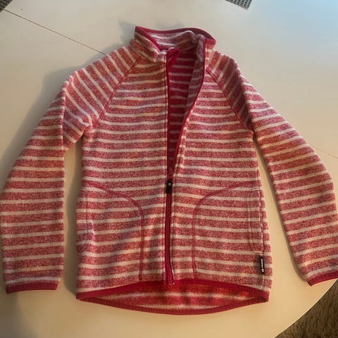 Lämmin, vetoketjullinen fleeletakki. Käytettäväksi erikseen tai haalarin alla. Tuuletettu, ei pesty. Muutaman kerran päällä käynyt.