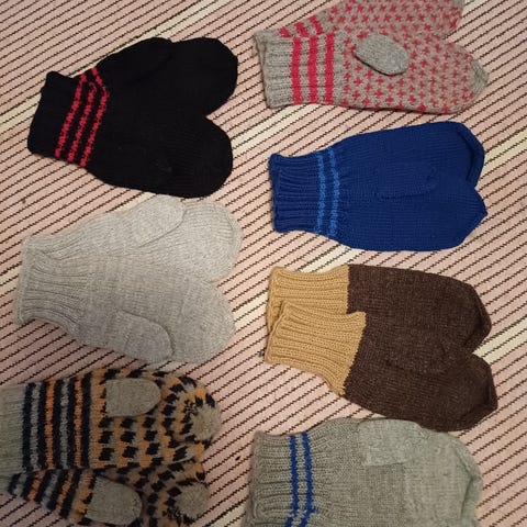Valkoiset vähän pienempään käteen, ruskeat koko 6-7