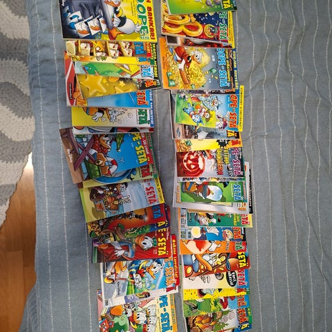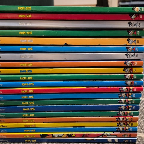 Roope-Setä lehtiä, kuvassa näkyy numerot. 18 kpl (Yhteensä 10e). Myös Aku Ankan taskukirjoja, 1€/kpl, niitä noin 15 kpl