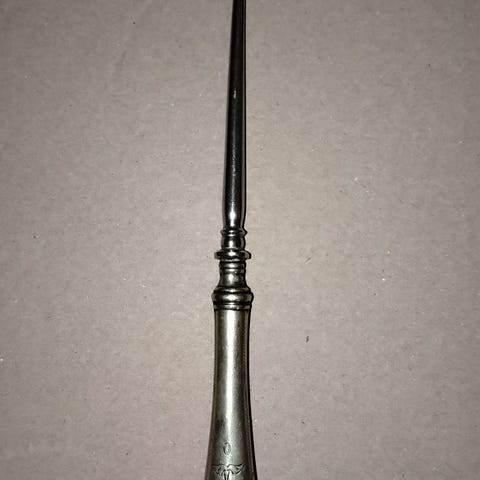 Vanha nappikoukku (napitusapuväline).