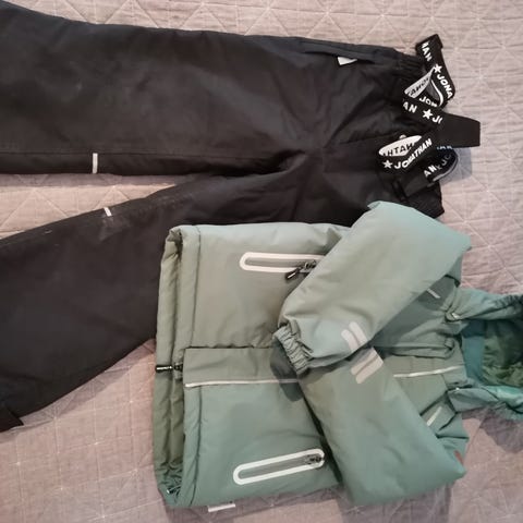 Myydään käytössä olleet toppavaatteet koko 116, pepussa ja polvien kohdalla pientä kulumisen jälkeä. Tuote pesty hajusteettomalla pesuaineella ja ei kotieläimiä.