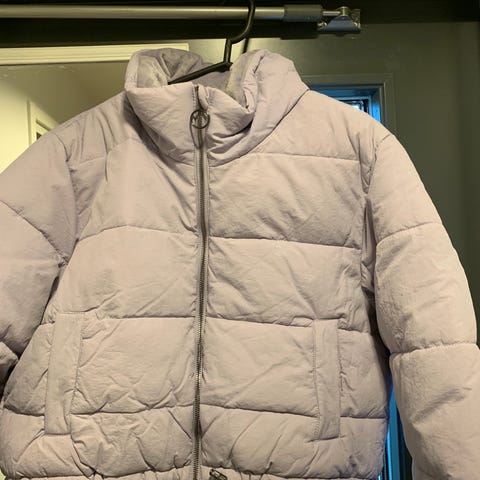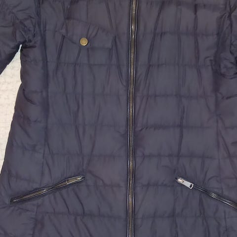 Brixtolin paksu ja lämmin toppatakki, joka on toiselta puolelta tummansininen ja toiselta musta. Käytettävissä molemmin päin. En löytänyt materiaali- enkä kokotietoja, mutta suurella todennäköisyydellä ei ole untuvaa ja koko arviolta L-XL / 40-42.