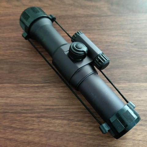 hyväkuntonen mutta minulle tarpeeton punapiste tähtäin. Jalan saa vaihdettua avaamalla neljä ruuvia. 11 mm kiskoo sopivan jalan saa mukaan.
