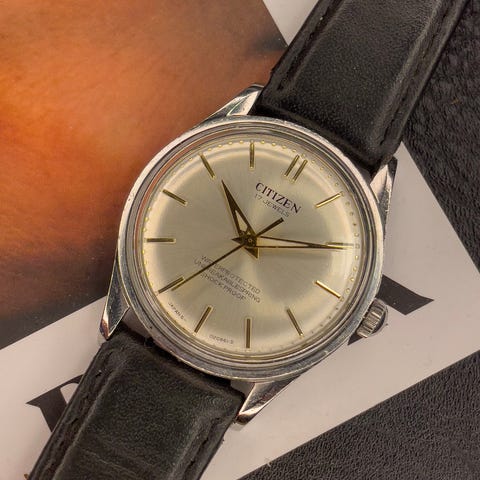 Ylimääräiseksi jäänyt 1970-luvun Citizen. Noin 34-35 mm halkaisija. Toimii ja huollettu minun aikana. Kuitti hävinnyt. Ei vaihtoa mihinkään.