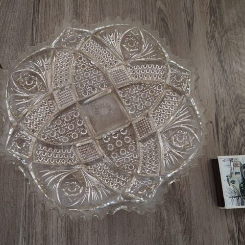 Kuvan kaksi Riihimäen lasin vanhaa tarjoilu lautasta. Puriste lasia halkaisija 19,5cm.Lohjalla.