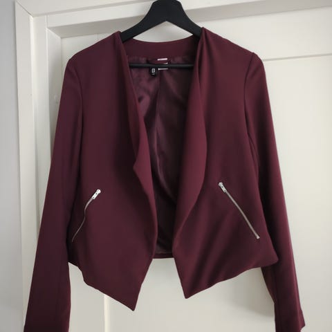 Erittäin siistikuntoinen punainen bleiseri, mustat napit. Kokonaispituus niskasta mitattuna 73 cm, kainalo-kainalo 45 cm, hihan pituus olkasaumasta mitattuna 59 cm. Rento malli. Pääsääntöisesti polyesteria. Nouto Kanavansuulta, lähetyskulut lisätään hintaan.