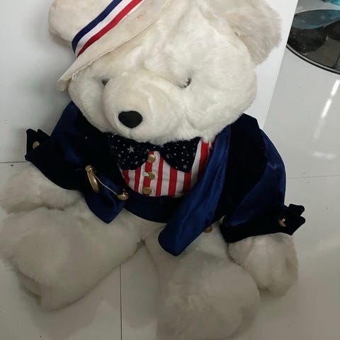 Jim Henson televisionin tuottaman Bear in the big blue house ohjelman päähahmo Sinisen talon nalle. Toimii kolmella AA paristolla. Vasemmasta kämmenestä puristettaessa tanssii ja laulaa Cha cha cha :) Hyvä ja siisti kunto. Vuodelta 1999.