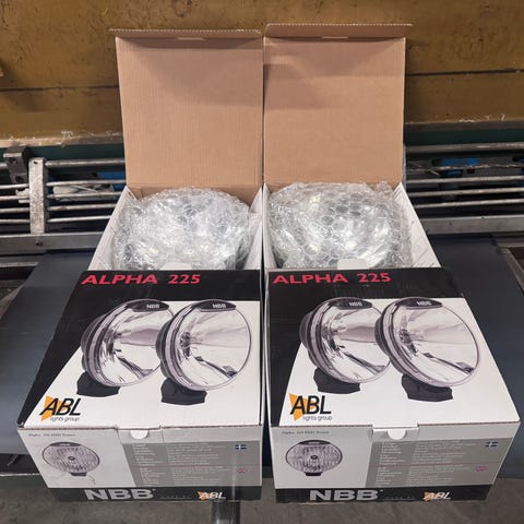 Hyvässä kunnossa olevat kolmet NBB Alphat led-parkeilla. Mukaan kaksi uutta 55w ballastia ja polttimoa.
