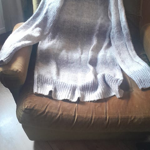 Valkoinen / harmahtava. Ollut päällä kerran. Yhtenä materiaalina villa, siksi en pysty käyttämään.