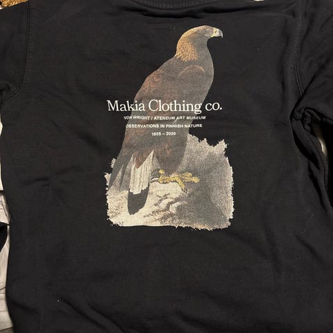 Makia Pitkä takki naisille, koko S. Vetoketjusta puuttuu toinen kelkka, se mennyt rikki, joten vetoketjua ei saa nyt kiinni. Uusi kelkka tai kokonaan uusi vetoketju vaihdettava.