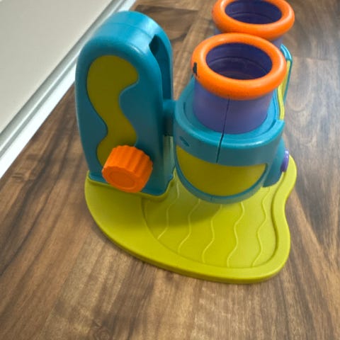 Lasten mikroskooppi. Kulumisen jälkiä, mutta toimii edelleen hyvin.