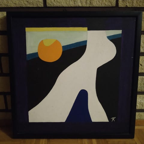 Kehystetty abstrakti 2-puoleinen öljyvärimaalaus