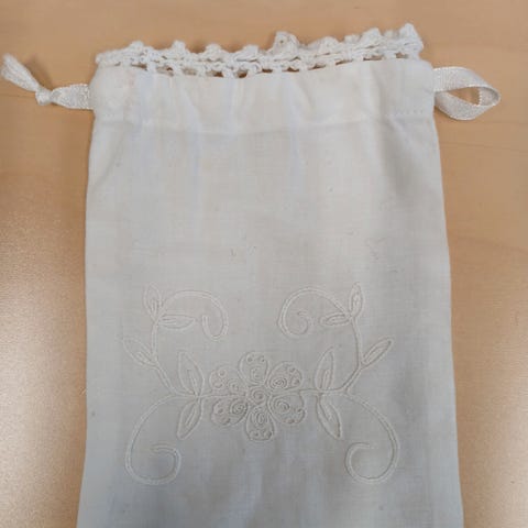 Kauniista japanilaisesta perinnetekstiilistä valmistettu käsintehty pussukka.
