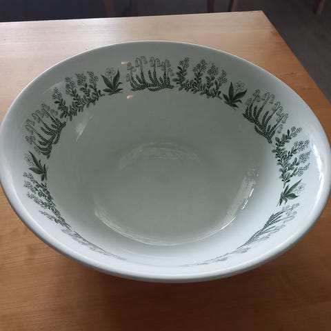 Arabian iso omenkulho korkeus 12 cm halkaisija 21.5 cm. Sisäpuolella on käytön jälkeä mutta ihan käyttökuntoinen.