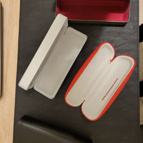 Kovakuoriset silmälasikotelot, musta ja harmaa. Siistit. 5€/kpl.