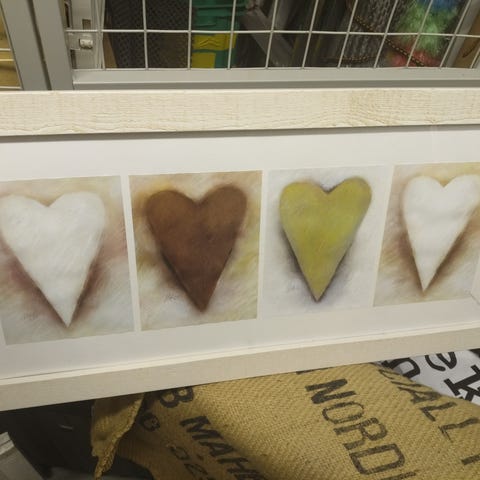 Kehyksen ulkomitta 80x80cm, syvyys 5,5cm. Kehyksessä muutama kolhujälki