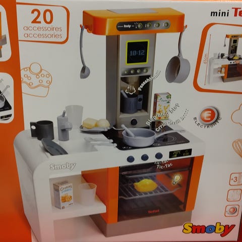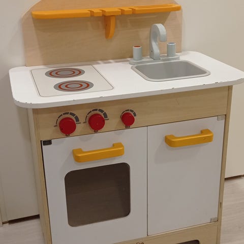 Hyväkuntoinen leikkikeittiö ääni- ja valoefekteillä. Kaikki toimii. Mukaan tulee paljon astioita ja ruokia.