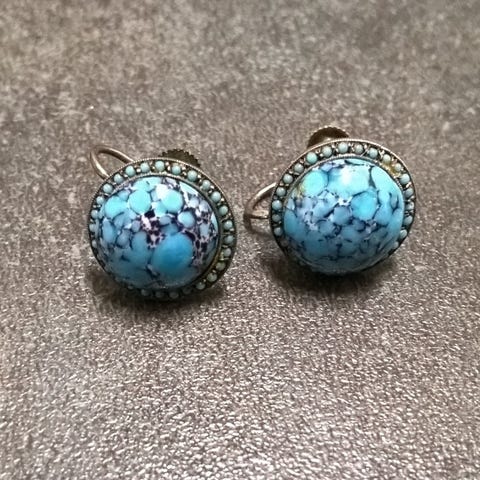Kuvan setissä kolmet korvakorut. Ei leimoja, joten koru on todennäköisesti korumetallia sekä lasikristallia ja korukiveä.