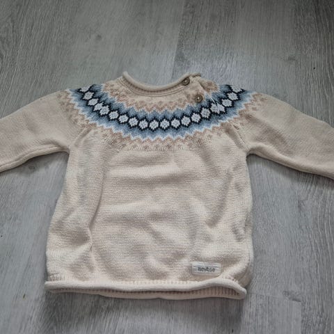 Myydään vain paristi päällä ollut Newbien valkoinen neule. Koko 68. Pöllökuosi. Virheetön.