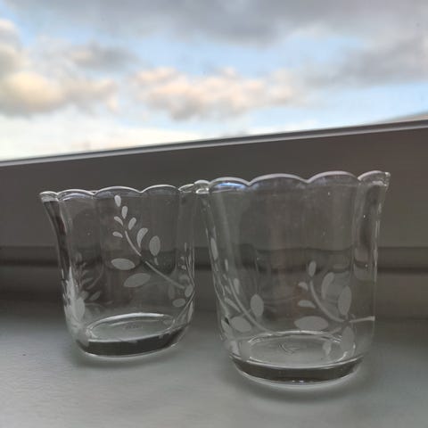 Tupla lasinen tuikkukippo. Neliön halkaisija 8cm. Hinta setille. Nouto tai postitus ei kuljetusta EIKÄ TORIDIILIÄ. Postituksen minimiostos 3e