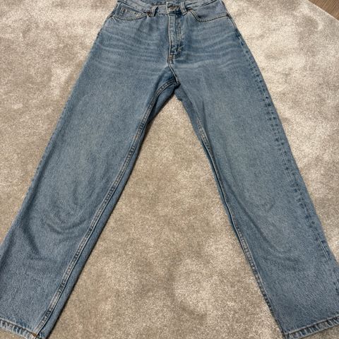 Monki Sininen Denim-farkut W24 vyötärökoolla, S-koko naisille. Farkut on valmistettu denim-materiaalista ja sopivat arkipukeutumiseen. Muutamasti pidetyt.