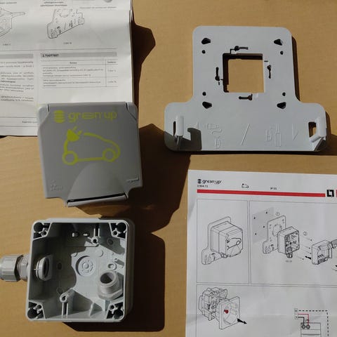 CleanVolt sähköauton latausasema, suunniteltu ulkokäyttöön. Latausasema on varustettu suojatulla pistorasialla ja lukituksella, mikä mahdollistaa turvallisen latauksen. Laitteen runko on valmistettu kestävästä materiaalista, joka soveltuu erilaisiin sääolosuhteisiin. Sopii sähköautojen lataamiseen kotitalouksissa tai julkisissa tiloissa.