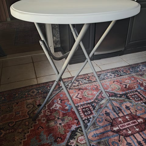 Säädettävät tuolit,keinonahkaa ja pöytä. Pöydän kulmissa pientä kulumaa. Kuvassa nähtävissä. Tuolit myydään myös erikseen.Yht. 50e