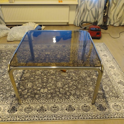 Lasinen hieno ja hyväkuntoinen sohvapöytä.