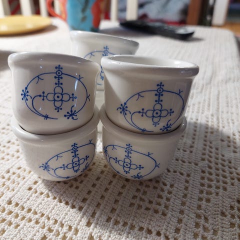 5kpl Rakastu arkeen tekstillä olevia munakuppeja.