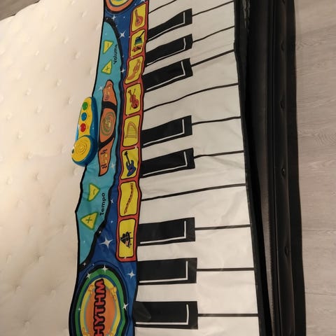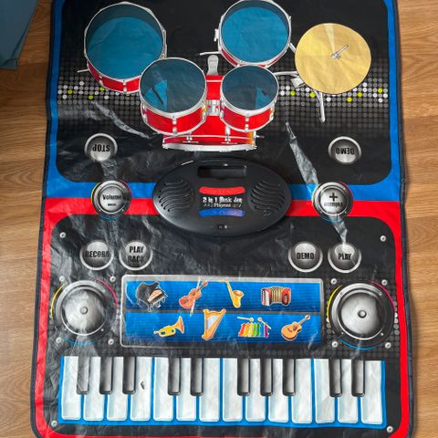 Musiikkimatto, jossa voi soittaa pianoa tai rumpuja (kapulat mukana). Muitakin soittimia yksittäisinä painikkeina (viulu, trumpetti, kitara yms.) sekä erilaisia taustabiittejä. Käytön jälkeä on, mutta oikein soiva peli vielä seuraavalle pikku muusikolle!