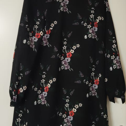 Muutaman kerran pidetty tummansinikukallinen, hyväkuntoinen mekko. Pituus n. 115 cm, vyötärö n. 84 cm, kai-kai n. 50 cm.