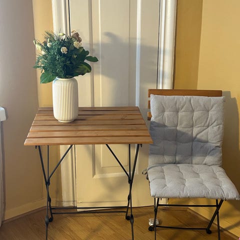 Kalusteet hankittu syyskuussa 2025, mutta ne ovat oikeastaan käyttämättömät, olleet lasitetulla parvekkeella. Myydään muuton vuoksi, sillä minulla ei ole enää parveketta. Nouto Arabianrannasta/Toukolasta. Voin tarvittaessa auttaa kantamisessa lähialueelle.