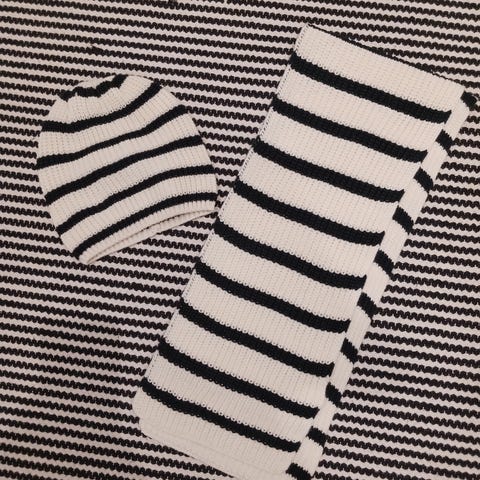 materiaali on molemmissa 100% villa( pipossa tuoteseloste on tallella/kaulahuivista tuoteseloste on irroitettu),