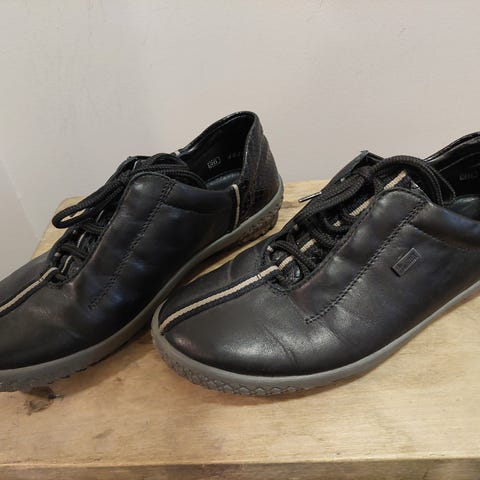 Mustaa nahkaa, mukavat ja pehmeät, itselleni suuret. Koko 37 sisämitta 24 cm. Kunto uutta vastaava. Voin postittaa, pk 8.80e.