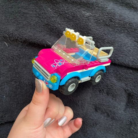 LEGO Friends Avoauto leikkisetti sisältää avoauton, hahmon ja erilaisia lisäosia. Kaikki palat tallessa
